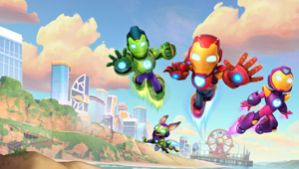 ספיידי וחבריו המופלאים 4 המסע לאי העכבישים - צוות ספיידי מוצא את אי העכבישים הפיראטי, וחבר חדש חמוד. גיבורים במים - הכירו את הגיבור, קפטן אמריקה, ואת החבר החדש שלו, איש המים. (שח)