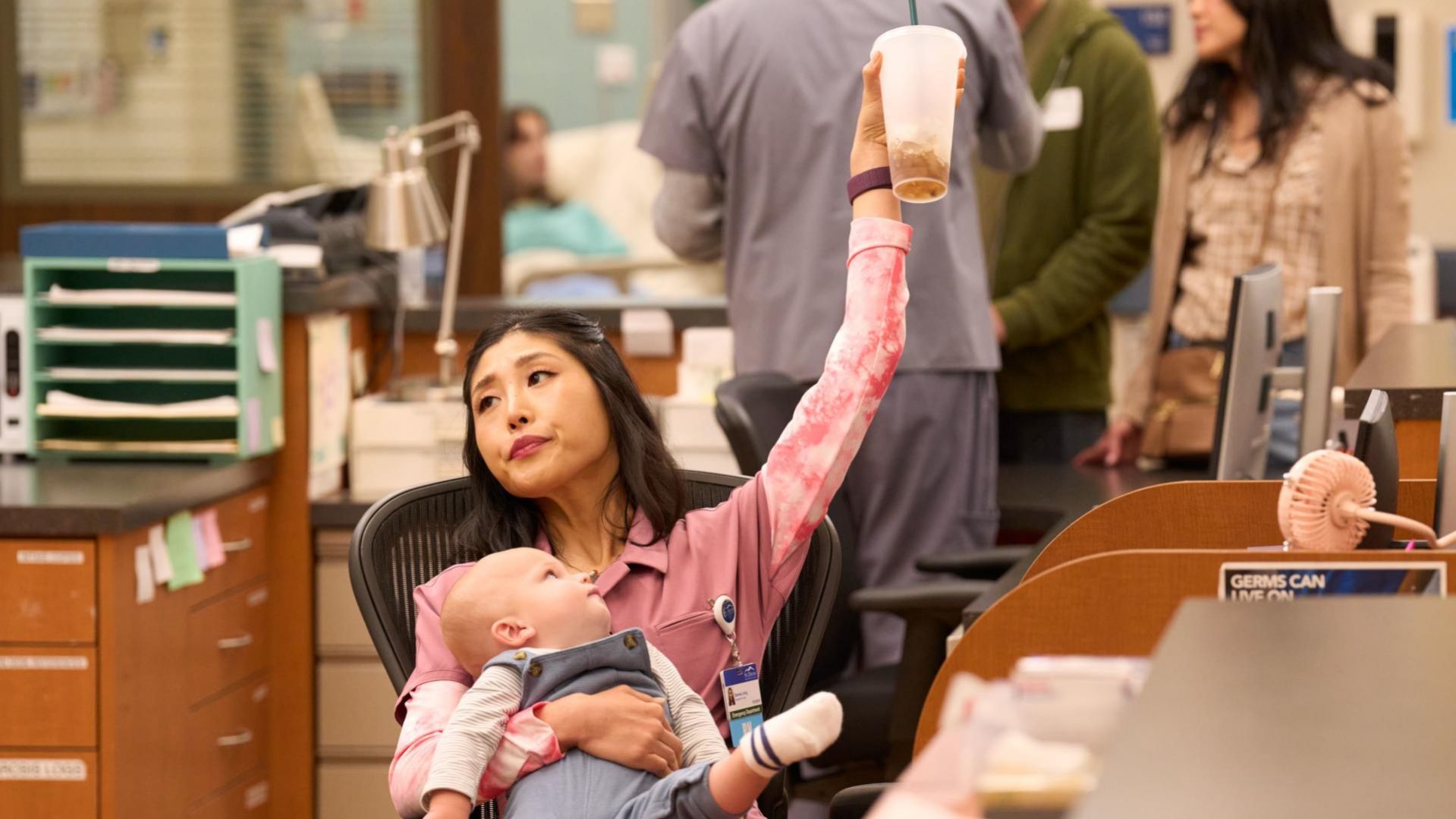 סיינט דניס מדיקל 2 - פרק 15 מנהלת מבית חולים מתחרה באה לחדר המיון, וג'ויס נלחצת. סרינה מתנדבת לטפל בתינוק כדי לא לעבוד.